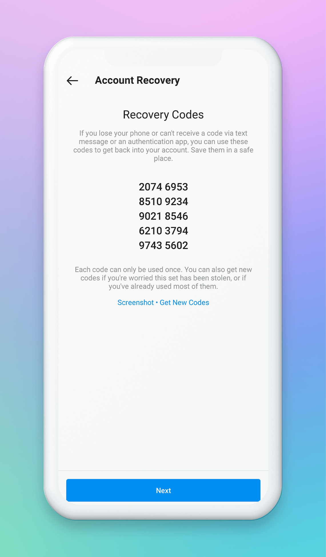 مهم ترین قسمت همینجا هست، اینجا کلید ریکاوری رو بهتون میده تا اگر زمانی به کد یه بار مصرف دسترسی نداشتید بتونید با این کلید های ریکاوری، تایید دو مرحله ای رو رد کنید و خاموش کنید